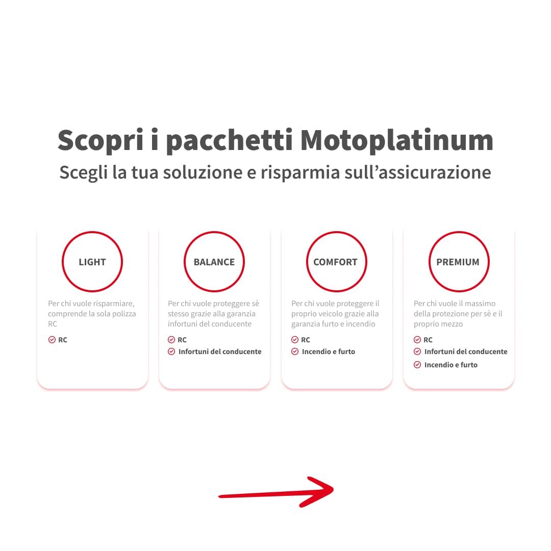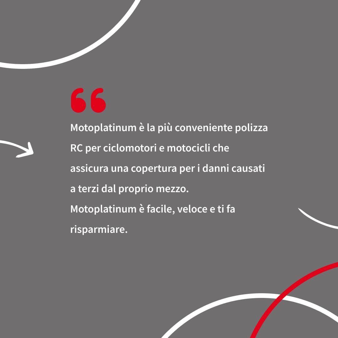 Motoplatinum è l’assicurazione vantaggiosa: potrai risparmiare infatti fino al 60% sulla RC ma soprattutto potrai personalizzarla in base alle tue esigenze.