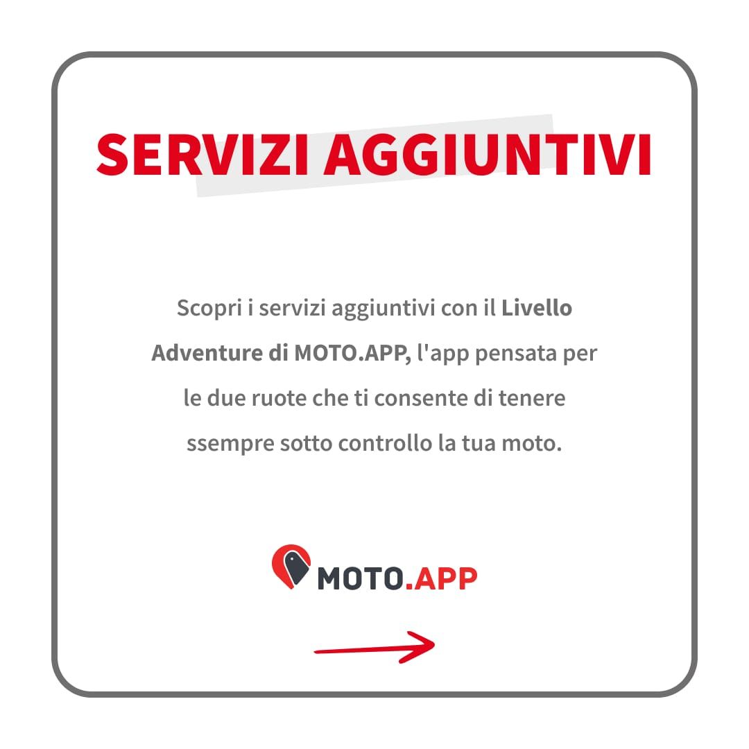 Indispensabile per la sicurezza del tuo veicolo, MotoplatinumBOX ti permette di sapere sempre dove si trova il tuo scooter, registrare i tuoi parametri di guida e consultare le informazioni sui tuoi viaggi, ma anche di ottenere il 20% di sconto sulle garanzie accessorie (infortuni del conducente, assistenza e tutela legale). MotoplatinumGOLD è inclusa nel prezzo.
