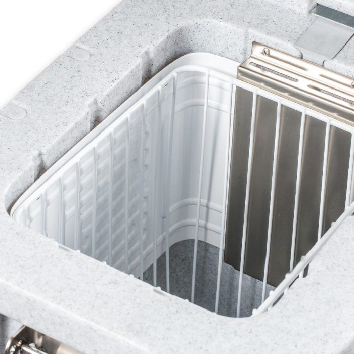 Contenitore in unico pezzo, realizzato in stampaggio rotazionale, senza spigoli e giunzioni interne. Robusto e resistente, per una lunga durata di utilizzo.