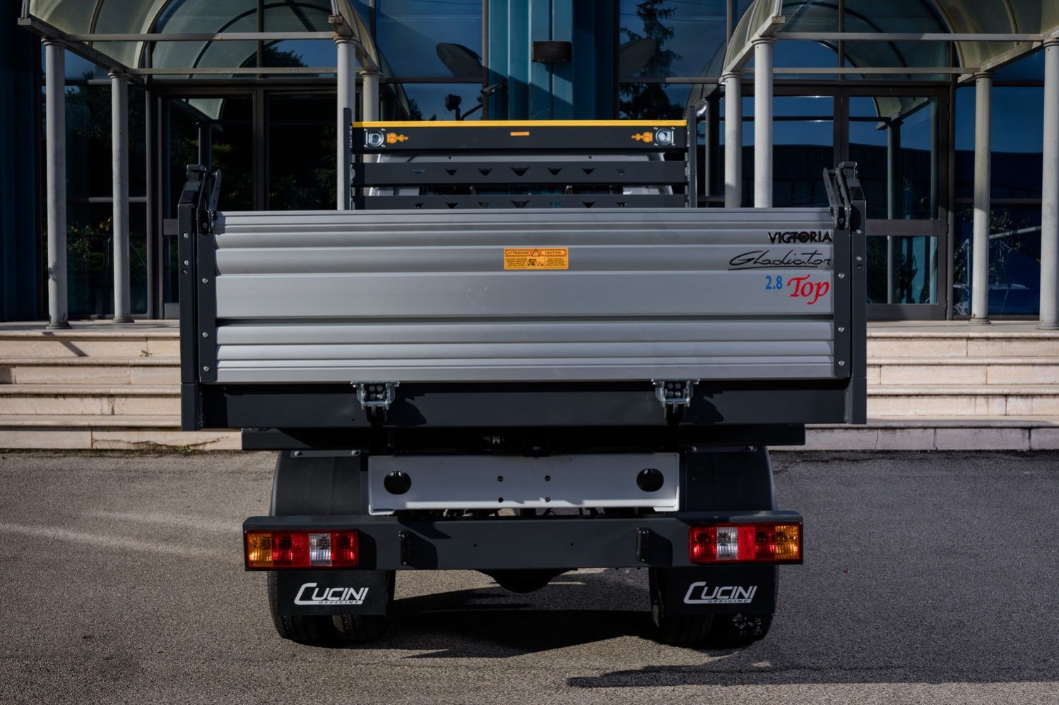 Il Giotti Victoria Gladiator Top 2.8 Gemellato con allestimento ribaltabile trilaterale rappresenta la versione più robusta della gamma "Top", caratterizzata dalle ruote posteriori gemellate per una maggiore stabilità e capacità di carico su terreni impegnativi.