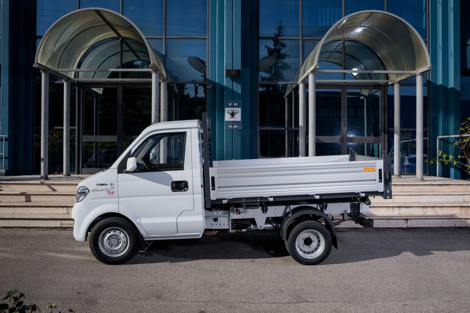 Il Giotti Victoria Gladiator Top con allestimento ribaltabile trilaterale è un veicolo commerciale leggero rinomato per la sua robustezza e capacità di carico, ideale per lavori edili e manutenzione urbana.